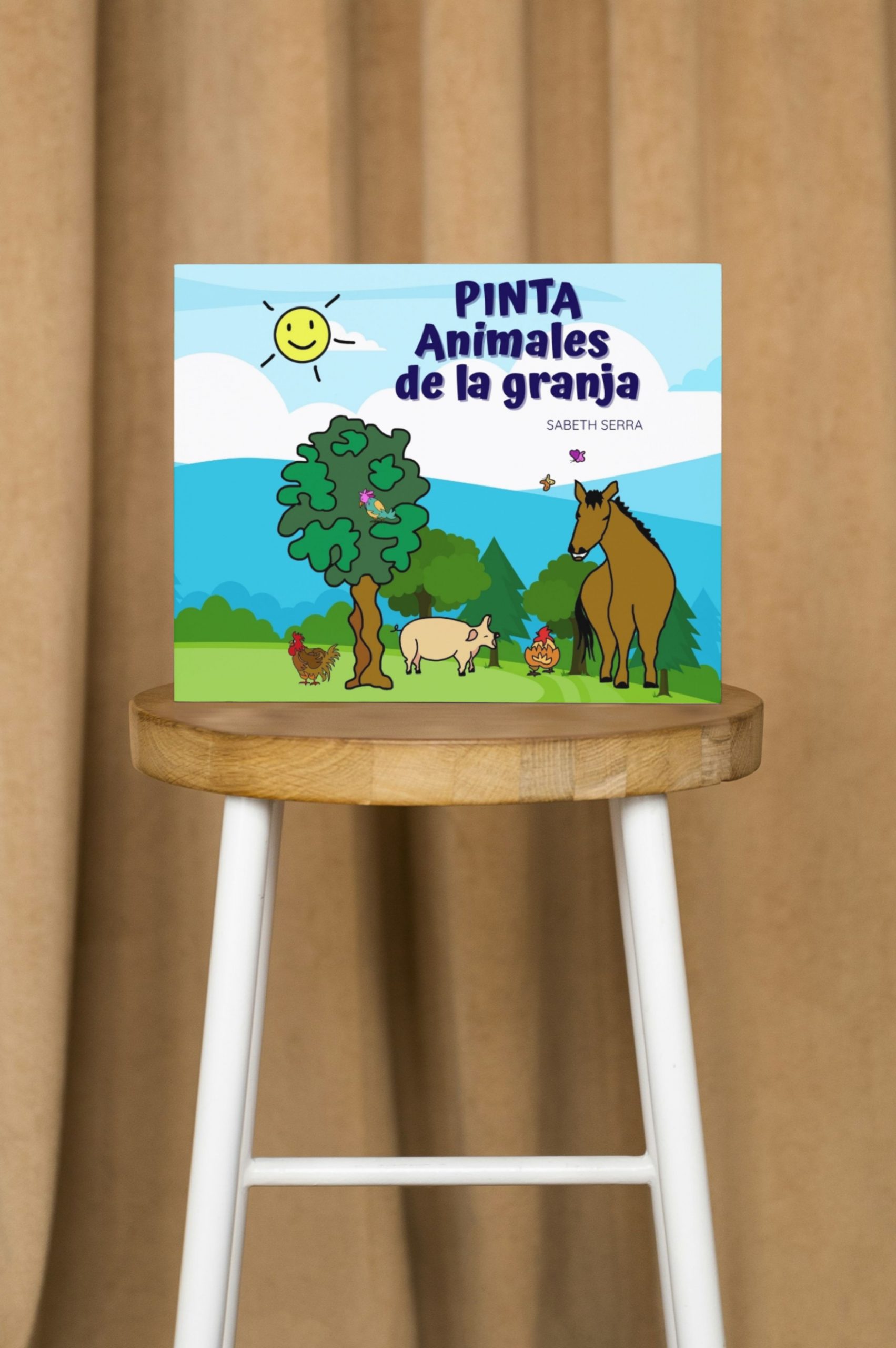 Un libro sencillo de tapa blanda y con dibujos únicos realizados a mano para que el pequeño artista disfrute coloreando a su gusto mientras conoce a los animales de la granja.