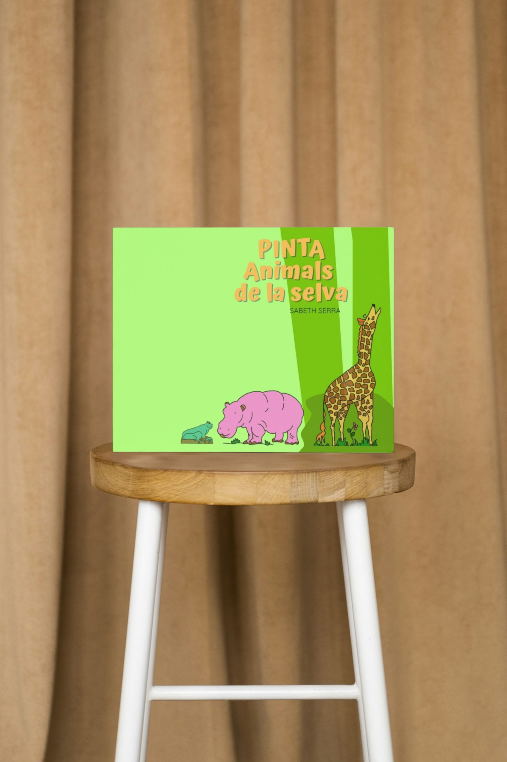Un libro sencillo de tapa blanda y con dibujos únicos realizados a mano para que el pequeño artista disfrute coloreando a su gusto mientras conoce a los animales de la selva.